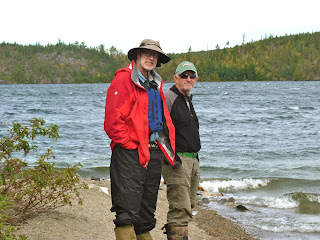 This was the trip of the big lake trout - I caught a very large one, and George caught a humongus one. Both were great and long fights, with line peeling off the reel numerous times. I had three other large ones on, but one broke off, and the other two came off, but all three peeled line numerous times before coming off.