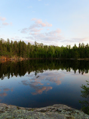 It's the 6th spring trip to the Boundary Waters Canoe Wilderness Area (probably another 14 + fall trips too) and we decide to head into Crooked Lake this spring as a change from our usual South Arm of Knife Lake spring trip. There are five of us, with George testing out his homemade wooden solo canoe. It's a "lively" (a bit tippy) boat, but he handles it very well and as usual outfished the rest of us (particularly me) - We have three fantastic fish dinners courtesy of mainly George, but most of the other guys contributed fish as well. this trip starts at Mudro Lake and 7 portages later, we reach Crooked Lake via Sandpit Lake, Tin Cup Mike Lake, Horse Lake, the Horse River and a small piece of Basswood Lake. This spring trip is by far our buggiest with our bug shirts getting a real workout as the black flies were out and about. Fishing was so so, but some decent fish were caught. As always when Jeff Norby is along we had plenty of homemade biscotti (made by Jeff's wife Michelle) with our coffee each morning. It was also our busiest spring trip too, with most campsites in the area occupied by our third day. We had great weather though with rain only on our first late afternoon and evening...cold nights in the beginning (frost first two mornings; but 80 degrees by the time we canoed out.
