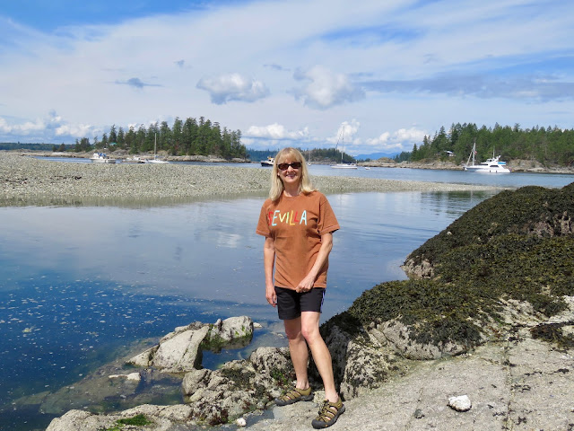 We hiked three times too - for about three hours in K'Was park, and twice to Easter Bluff; both places located close to out airbnb, just a few minutes drive. The views from Easter Bluff were really great and made for some "Don and Donna" photo ops. We ran into a Dutch couple three different times in the first three days on the island, first on the ferry ride from Quadra, where we both watched a distant pod of orcas; then the next day at the craft store in squirrel cove, and finally on our hike in Kwas Park. Really nice young couple. We also visited the surprisingly nice little museum in Manson's landing, where we visited with the lady who worked there part time, and the young man, Quinn, who worked there in the summer (he summers on the island with his parents).