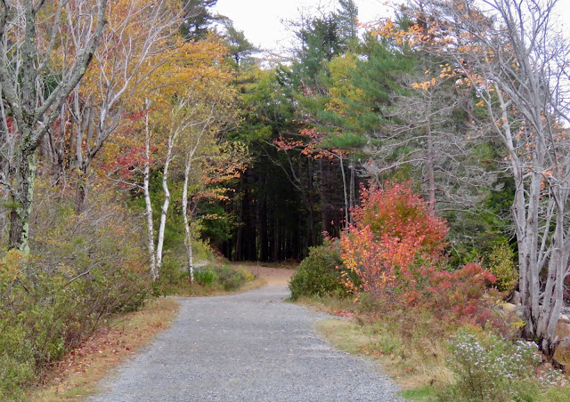 A Nor'easter hit overnight and there were major power outages from New Jersey on up the coast. We lost power at 6:30 AM...it turned out to be very localized.. a tree came down on the power line just down the road and the tree was blocking about 2/3rds of the road. We left at around 11:15 and they didn't have the power back on, but the crews were just arriving then. It spit rain a little and blew but for the most part the major part of the storm was over by the time we got out. A shopping day for Donna in Bar Harbor and a walk around and take photos of Bar Harbor and then later a carriage road walk in Acadia National Park for me. Donna is sorting through her over $700 in purchases, most of them gifts for family and friends tonight before we head back to Boston and a motel night before she flies home and I start the big drive back.
