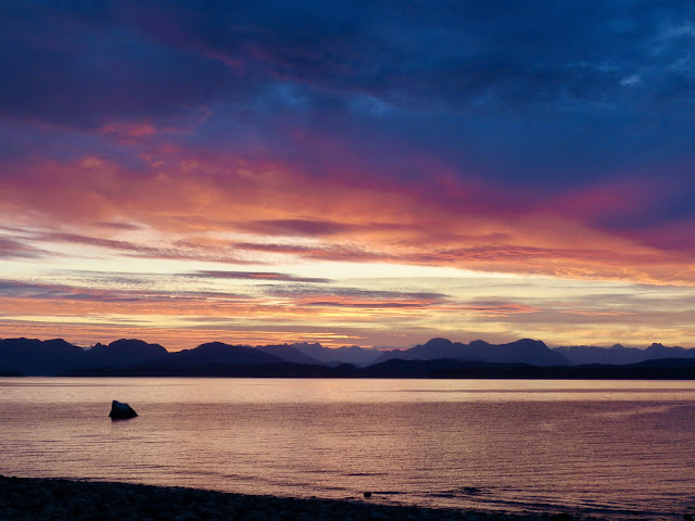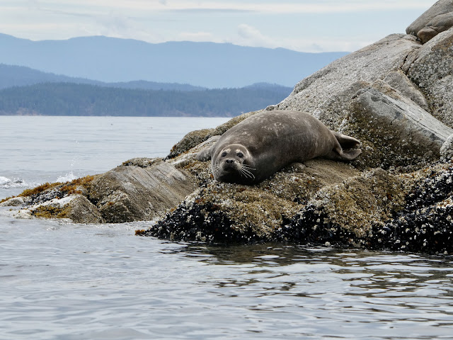 All of the usual suspects….hiking, paddling tidepooling from the kayaks, seals, humpbacks, orcas, eagles, great meals, great scenery, gorgeous sunrises, games most nights, faerie hikes, daily walks on the Kay Dubois trail, etc. Add to that a visit by Bill and Karen Wilcox our last week on the island, great to see them and fun to show them around the island a bit, and then we had breaching humpbacks, and at least 6 orca swim bys in our 4 weeks here. The sign that greets you in Quathiaski Cove has got it right “Simply Paradise”.