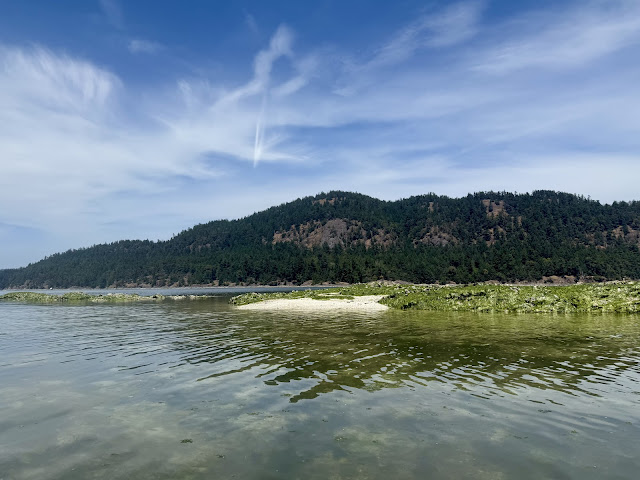 On my last full day, I did a 8.75 mile kayak up the NE coast of Pender to Hope Bay. Mt. Baker “came out” again up. By Hope Bay, saw some seals, had a great lunch spot, and except at my launch site saw very few other boats.