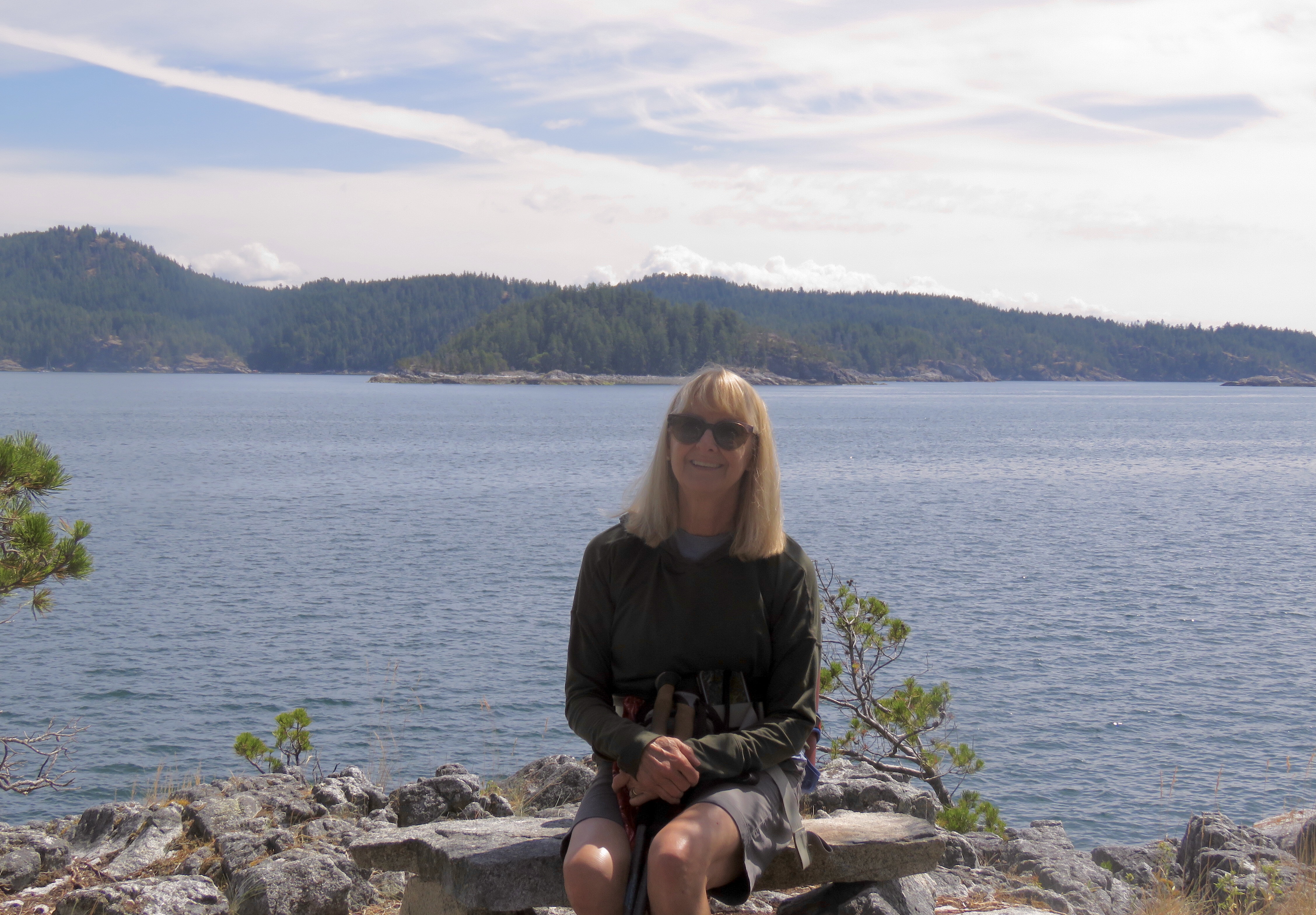 A long paddle day for me, a hang out day for Donna. I launched in Granite Bay at the north end of the island, and paddled through the Chain Islands out to Discovery passage and then back through the islands and across and back into the Small Inlet before returning to Granite Bay. A low wind day, and almost no other boats.